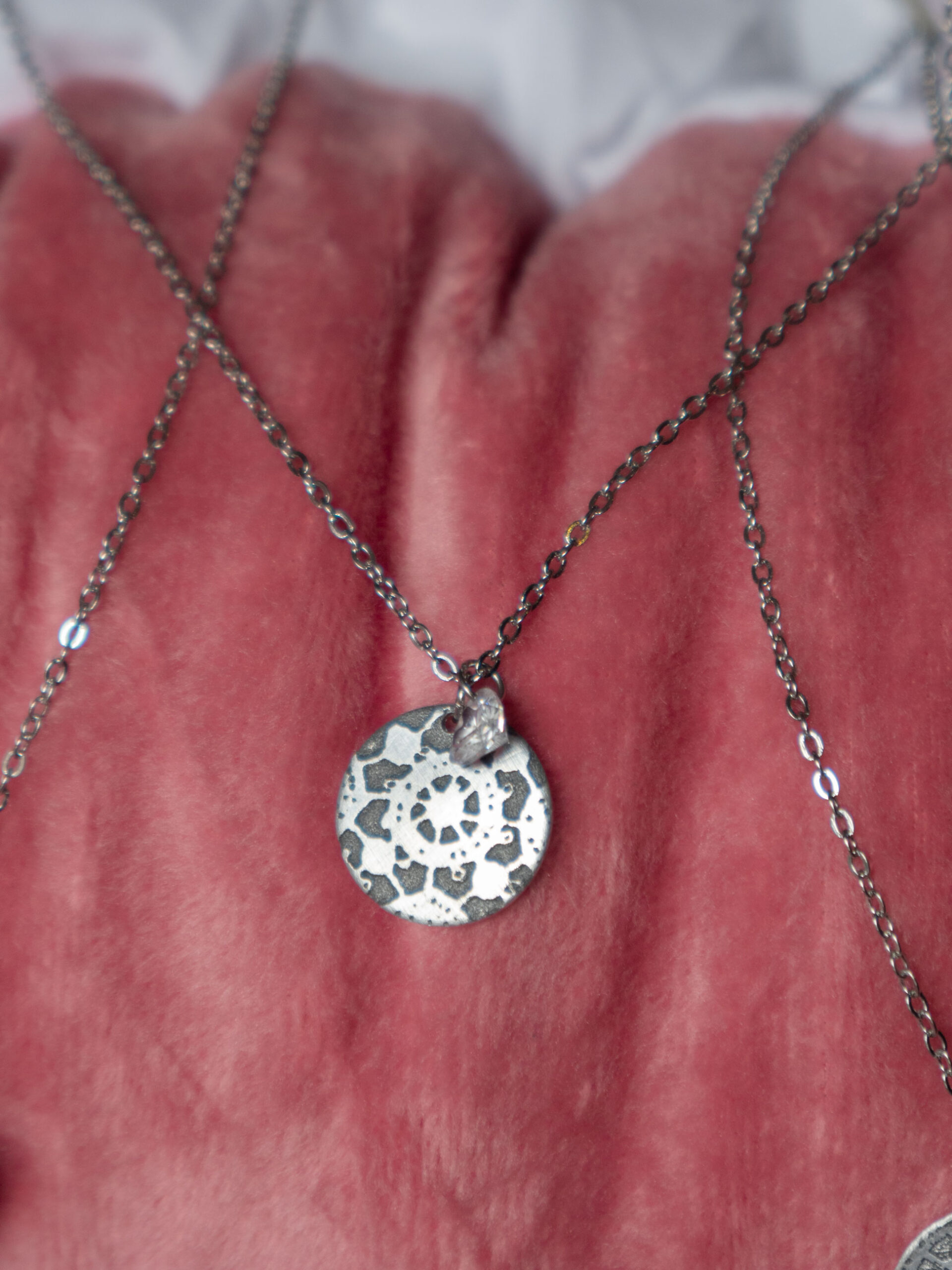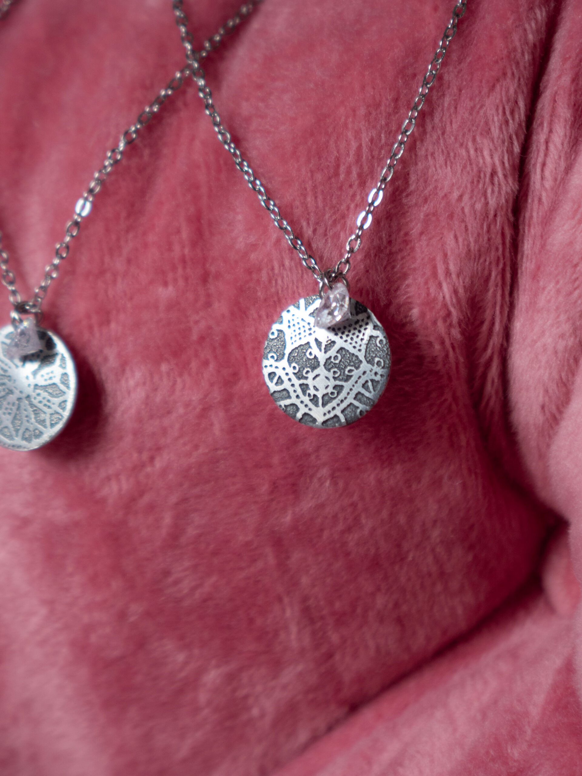 Izrađen je od visokokvalitetnog aluminija 99,5 – privjesak, i medicinskog nehrđajućeg čelika 304 – lančić.