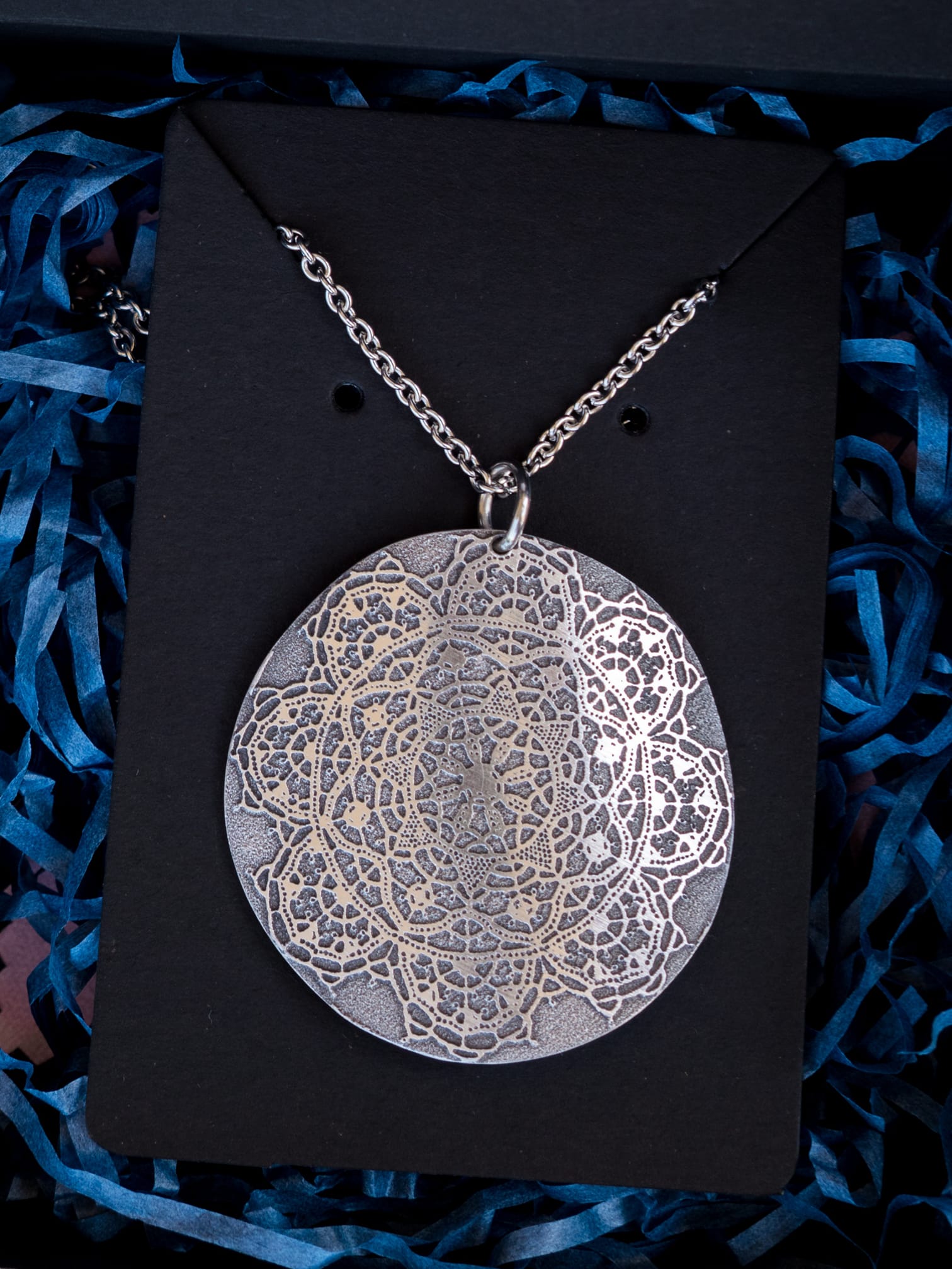 Aluminij je prekrasan i sjajan u hladnom srebrnom tonu. Također je vrlo lagan pa privjesak neće opterećivati vrat čak i ako je veći. Ako izgubi malo sjaja, koristi krpicu za čišćenje nakita za poliranje.